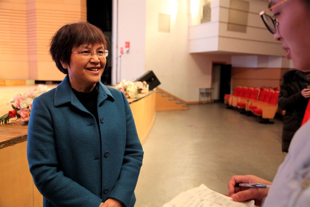 演出结束后,记者团的同学采访到了图书馆馆长宋波教授,她说:“整个中华优秀传统文化推广系列活动前后持续了将近两个月的时间,有快乐也有困难,但我们坚持下来了。在这里还要特别感谢校党委宣传统战部、团委和各个学院的大力支持。”同时她表示,习近平主席说过我们要有文化自信,要有我们民族自己的特色,希望我校大学生能多读些中国古代文学的书,丰富自身文化修养,提高思想素质,从而增强我们的文化自信。