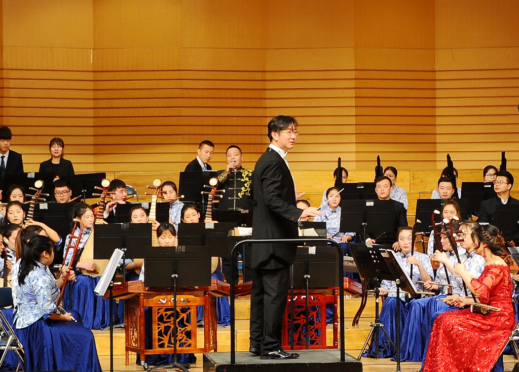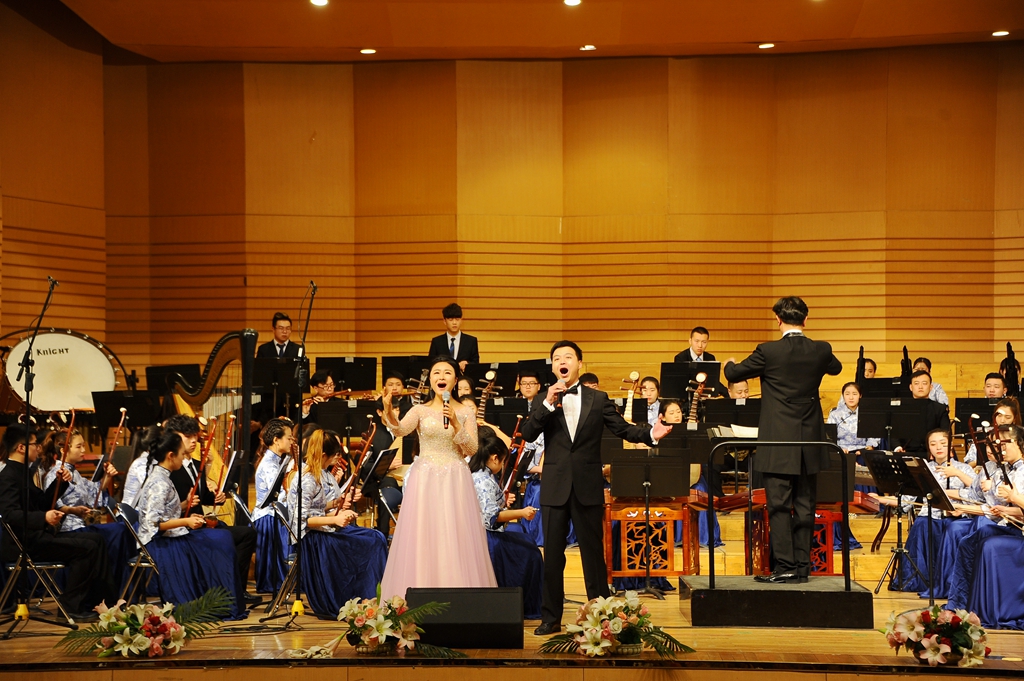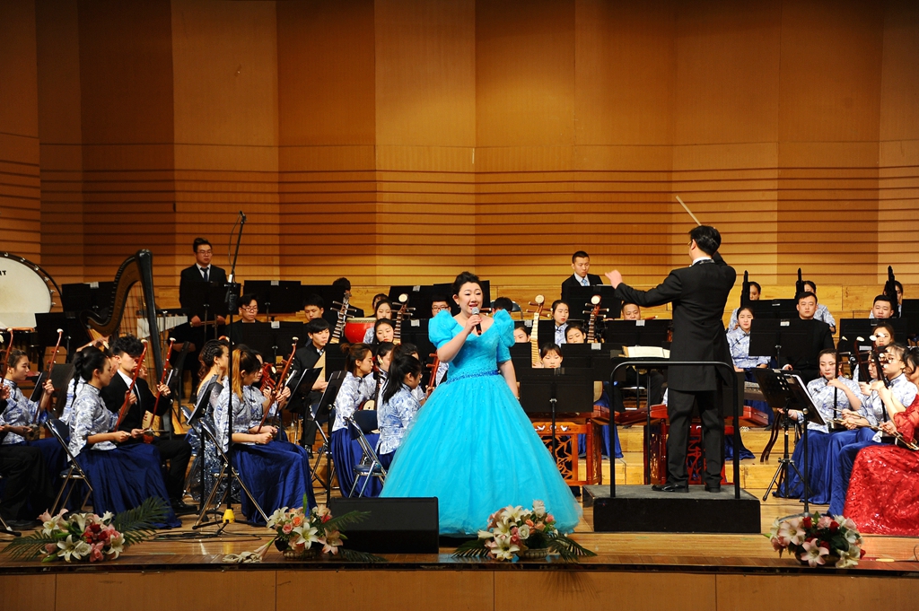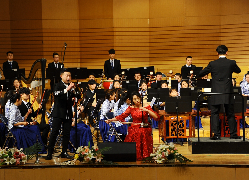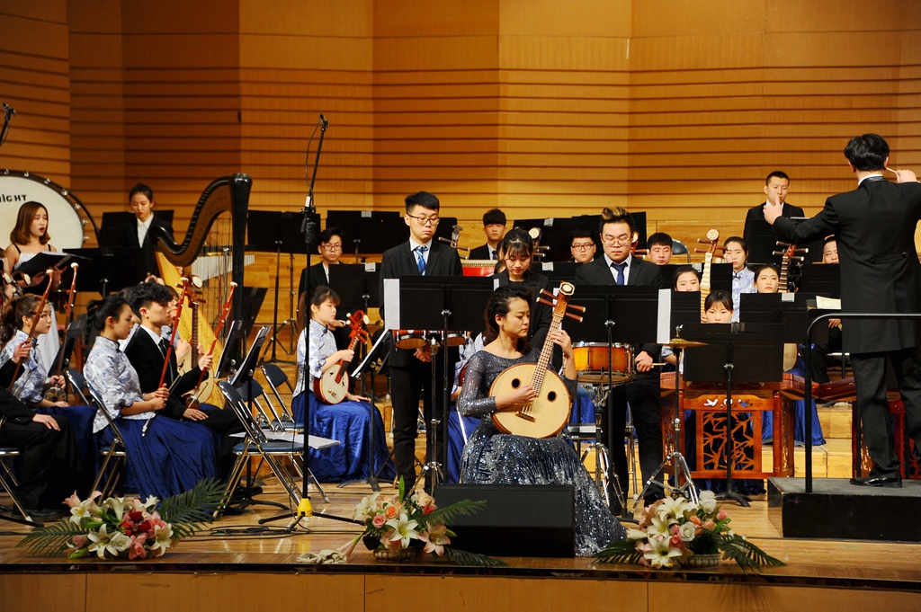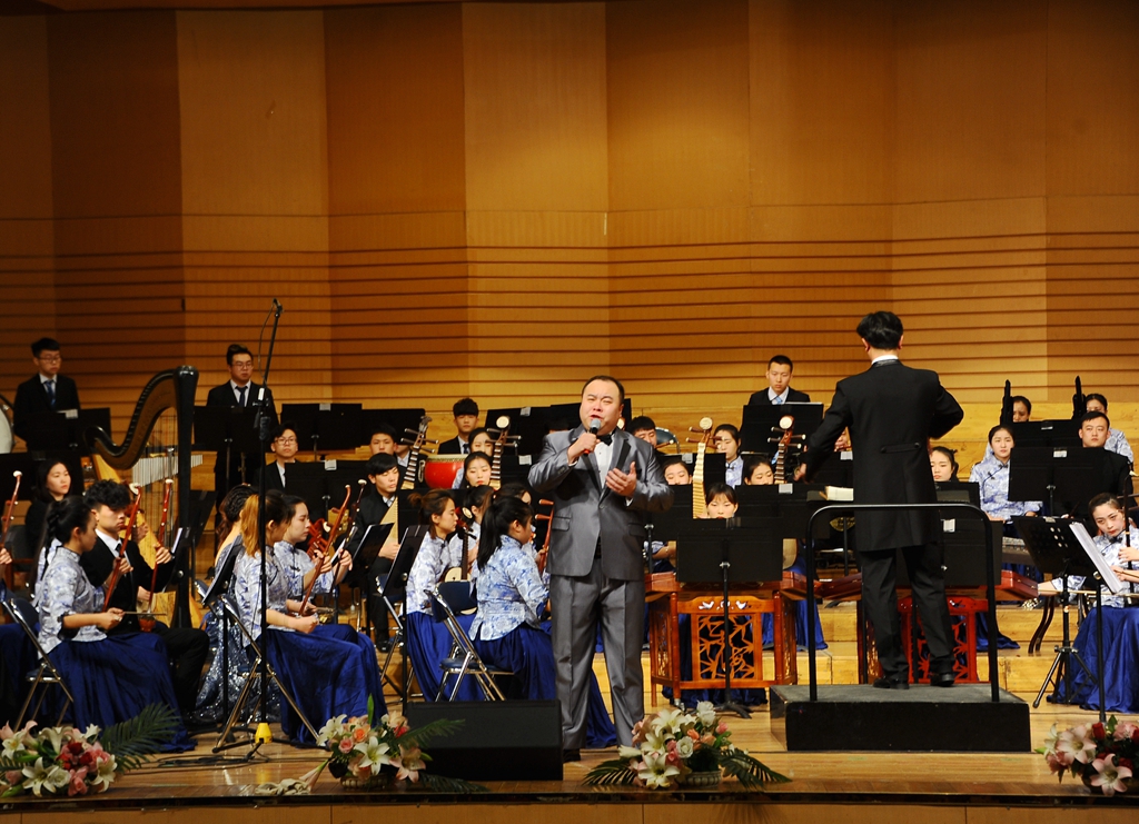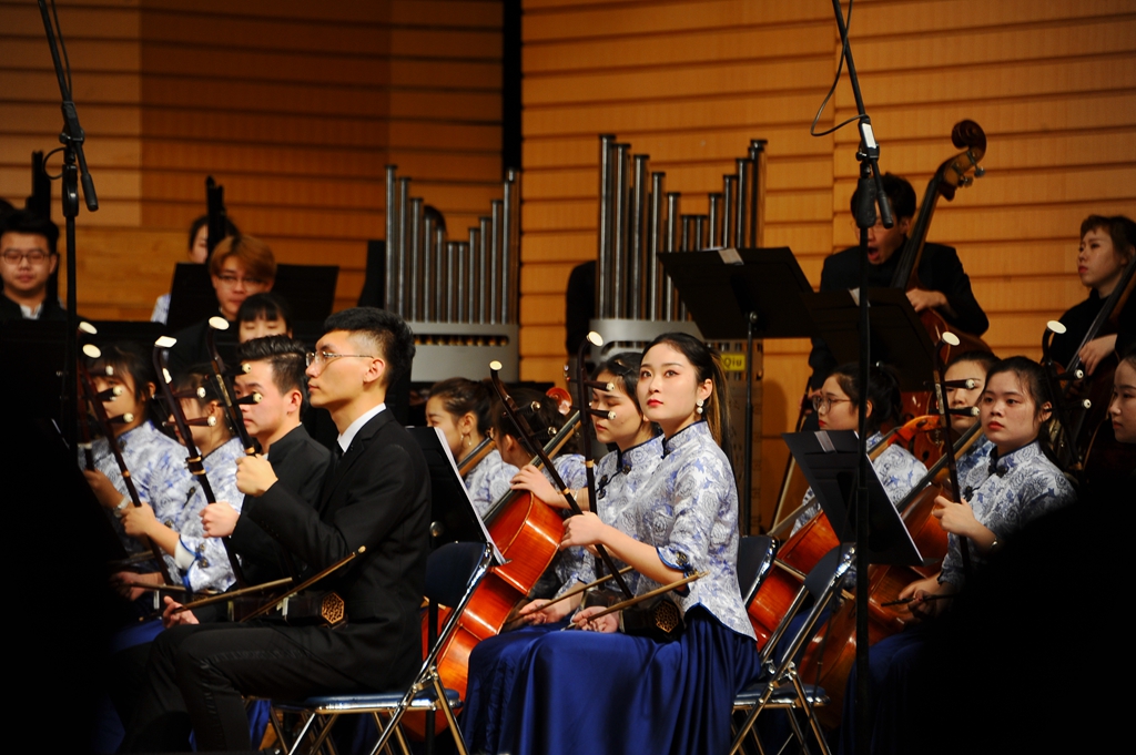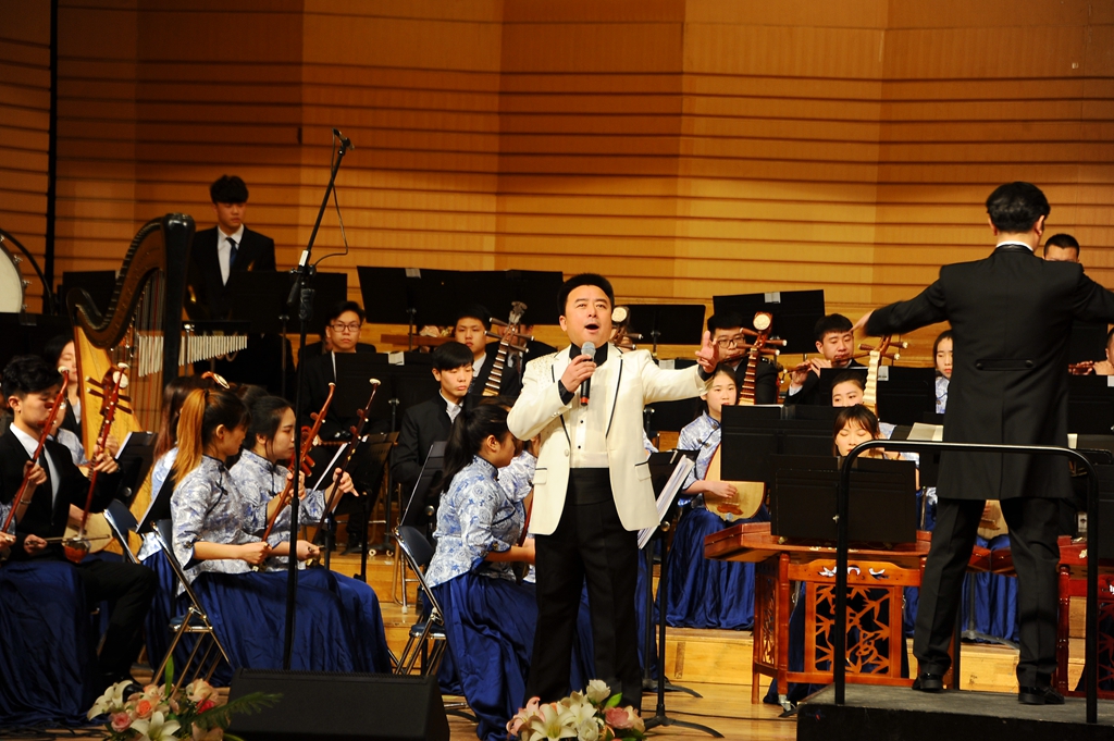 中阮与乐队《山歌》加入了乐队与人声的配合,以独创性的语言、高难度的技巧以及时尚化的风格,使音乐特质更加彰显与突出,给观众们带来一场听觉上的享受;青年教师孙博的独唱《父亲》以强烈的亲和力与扣人心弦的感染力歌颂了父爱的伟大;二胡、唢呐与乐队合作的《篱笆墙的影子》带领大家重温了一段经典的回忆;女声独唱《祖国之恋》和民族管弦乐合奏《我的祖国》,作品壮烈辉煌,展现了中华儿女对祖国的热爱,成熟壮美的演奏把音乐会的气氛推向了高潮!整场音乐会最后在民族管弦乐合奏《好汉歌》中圆满结束,精彩的演出赢得了现场观众热烈的掌声。
