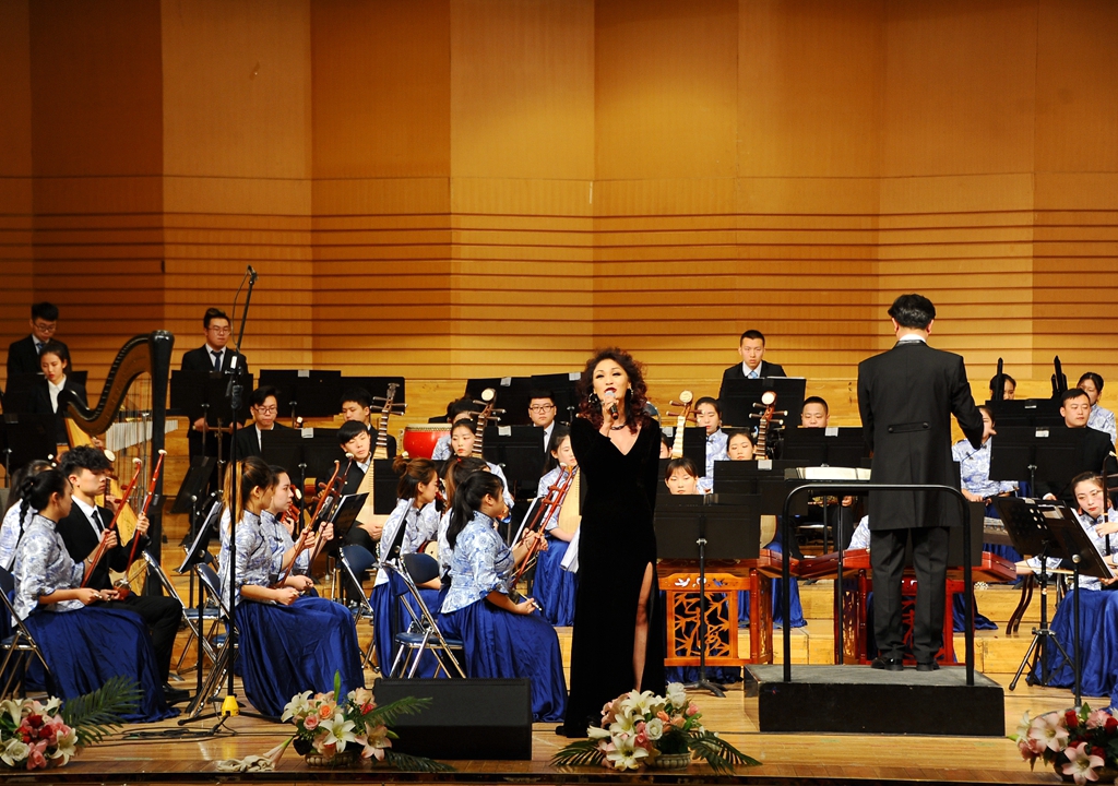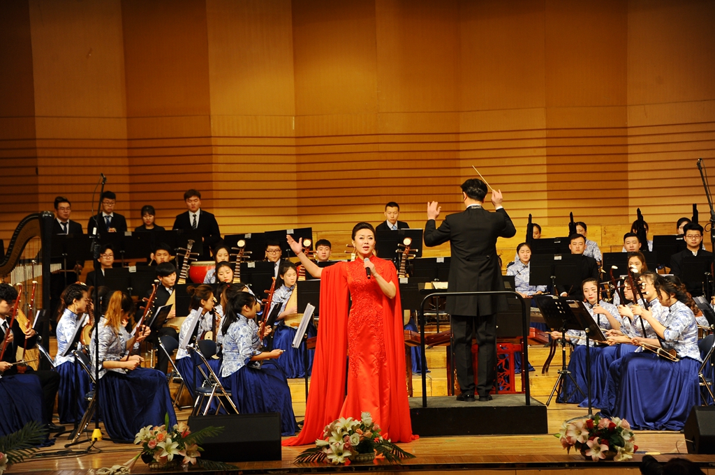 民族管弦乐合奏《国风》历史感厚重,以传统琴曲“梅花三弄”的主题为动机,以层层递进的开放性曲式“弘中国之风骨、扬民族之精神”;青年教师陈丹丹的女声独唱《不忘初心》告诉我们无论走多远,万水千山,不忘来时路,这就是不忘初心。