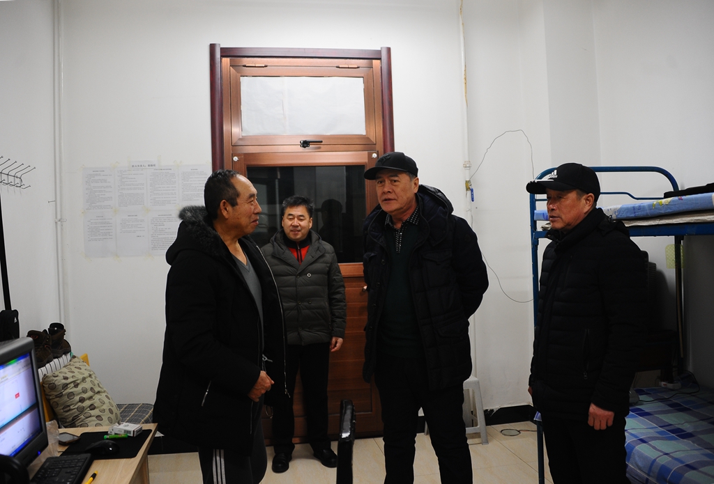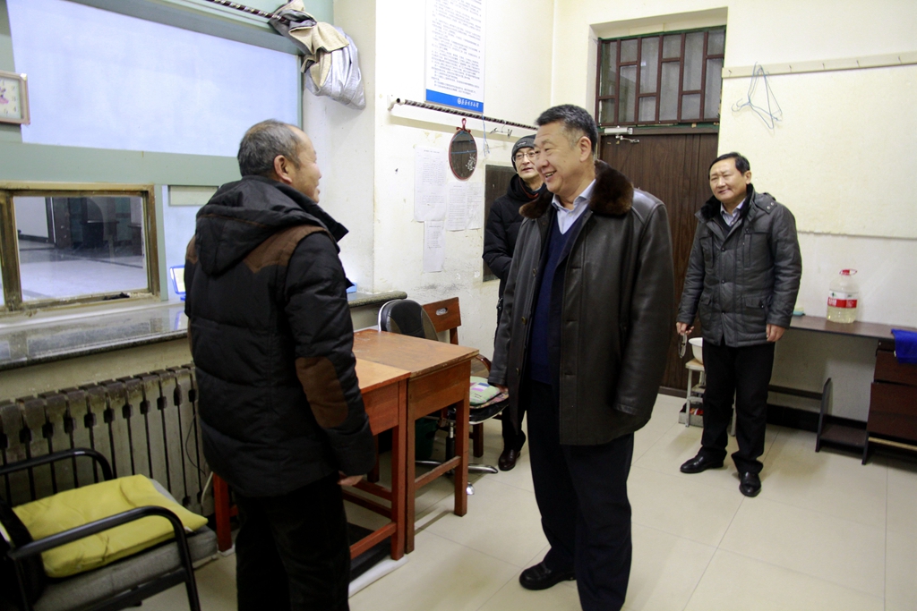 2017年12月31日晚,校长马立群、副校长王刚分别来到中区东门门卫室、11号教学楼门卫室以及学生宿舍楼门卫室、逸夫楼泵房、东区锅炉房等处,看望慰问值班人员,向大家送去新年祝福。
