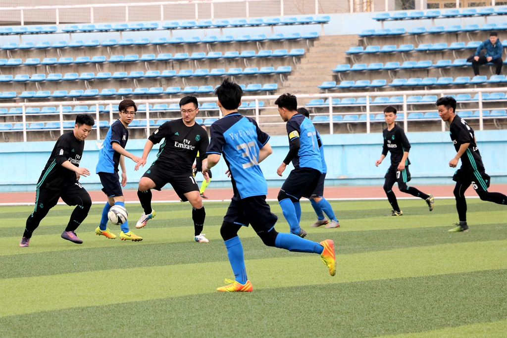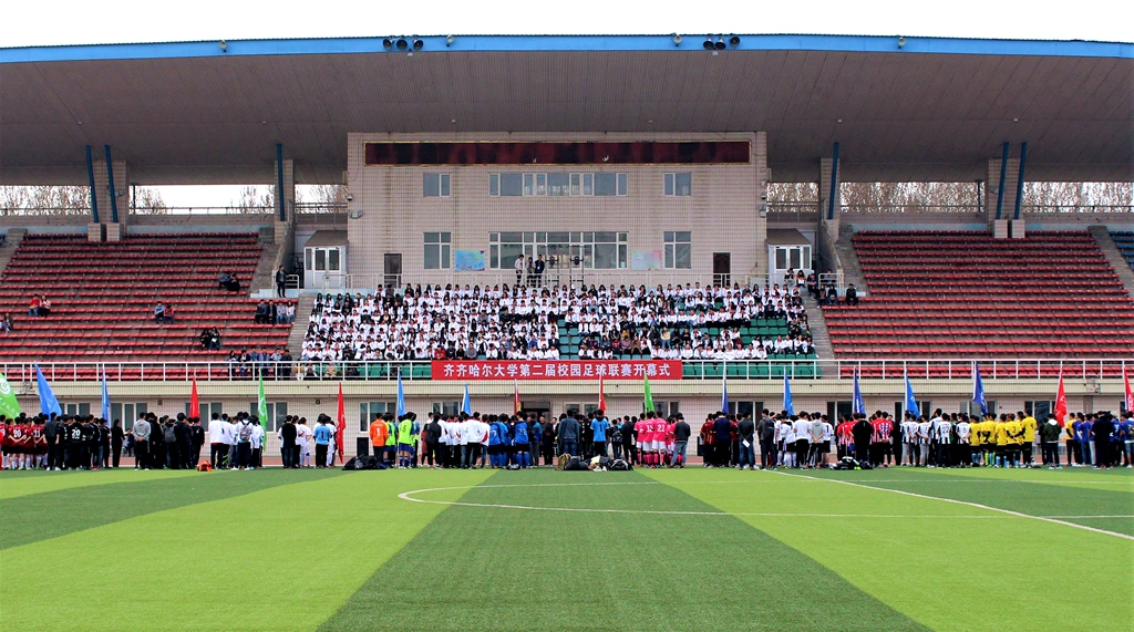 开幕式过后,音乐与舞蹈学院和食品与生物工程学院拉开了齐齐哈尔大学第二届校园足球联赛揭幕战。赛场上球员们激情飞扬,观众台上助威声、号角声、击鼓声不断,呈现出一片热烈的场面。最终,凭借下半场的一粒入球,食品与生物工程学院以1:0战胜音乐与舞蹈学院,获得本届足球联赛的开门红。