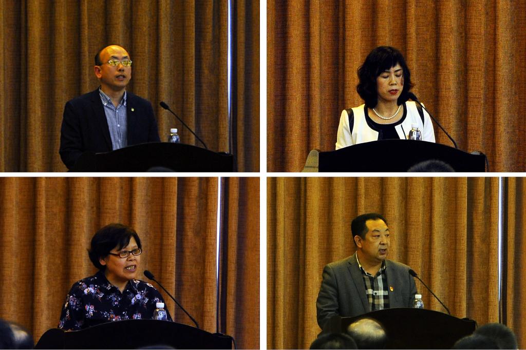 在结业式交流阶段,学校办公室副主任李秀波,理学院党委副书记兼副院长马艳萍,十三届全国人大代表、食品与生物工程学院副院长郭成宇,哲学与法学学院党委副书记兼副院长杜金彪,离退休工作处综合办公室主任王发展,财务处结算中心主任王琼,计算机与控制工程学院团委书记、学工办主任张英琦,哲学与法学学院党政办公室主任冯占元,宣传统战部副科级干事姜慧博,材料科学与工程学院团委副书记、学工办副主任黄振华分别代表各组进行了大会发言。