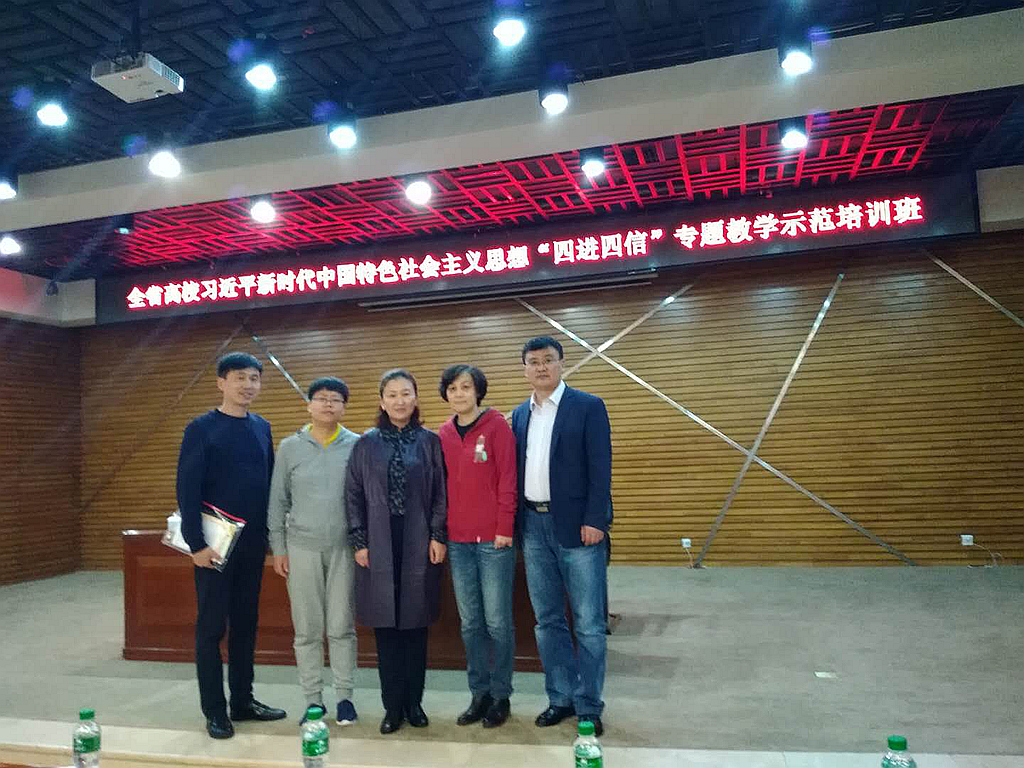 齐宏伟对四名参加培训教师进行了工作部署并提出要求。她说,2015年,我省高校开始了习近平总书记系列重要讲话“四进四信”专题教学工作,我校专题教学随之开展,三年来一直受到广大师生的欢迎。实践证明,专题教学对于推动师生集中系统学习习近平总书记系列重要讲话精神发挥了不可替代的作用。党的十九大后,省委紧跟党的理论创新步伐,及时将“习近平总书记系列重要讲话ˋ四进四信ˊ专题教学”更名为“习近平新时代中国特色社会主义思想ˋ四进四信ˊ专题教学”。她强调,这个培训班对于我们既是一次必要的队伍培训,也是一次部署和动员。齐宏伟要求参加此次培训四位教师一定要全身心投入,虚心学习,悉心领悟,多交流、多积累,保证学习效果,回校后,做好学院的二次培训和集体备课,把同志们的思想统一起来,热情调动起来,工作开展起来,确保我校能够按时、高质量开出“四进四信”专题教学课。