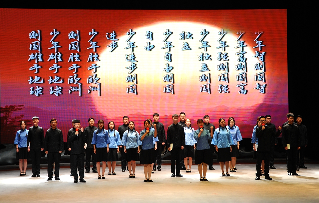 当今中国自强不息,我辈少年勇于担当,一首群诵《少年中国说》,字字铿锵,坚决有力,让人感受到了齐大学子的朝气和力量;齐齐哈尔市优秀团支部、文学与历史文化学院戏剧影视文学专业162班的同学们用短剧《习近平总书记对你影响最深的一句话》讲述了习总书记重要讲话带给自己的影响和启迪;第二十届黑龙江省青年五四奖章获奖集体齐齐哈尔大学鸿雁工程志愿服务队,用他们20年的风雨历程诠释了《鸿雁工程,薪火相传》;我校青年创业先锋们用自己的《创业故事》与大家一同分享了在“大众创业、万众创新”的时代浪潮下,挥洒青春、干事创业的心路历程;新时代的青年,从齐大出发,在青春中出发,配乐诗朗诵《青春出发》彰显了青春的责任与青春的力量;新时代,新征程,《团学骨干有话说!》,校院两级学生组织的代表用他们掷地有声的誓言,抒发了用青春服务同学、报效祖国的壮志豪情。最后,在全场齐唱《赞赞新时代》的歌声中,将本次活动推向了高潮。