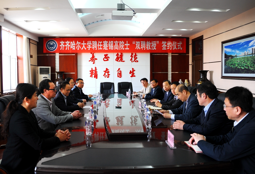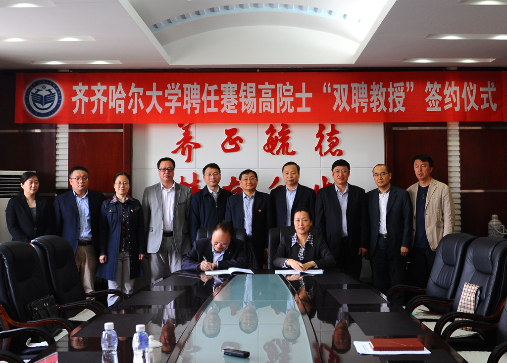 5月12日上午,学校在办公楼504会议室举行聘任蹇锡高院士“双聘教授”签约仪式,中国工程院院士、全国高分子材料与工程专业教学指导委员会主任委员、大连理工大学博士生导师蹇锡高教授,我校校长陈桂芝,齐齐哈尔市科技局副局长周耀库出席签约仪式。党委组织部部长张文治、重点建设与发展规划处处长张德庆、教务处处长陶佰睿、科研处处长荆涛、人事处处长刘喜军参加了聘任仪式。聘任仪式由刘喜军主持。