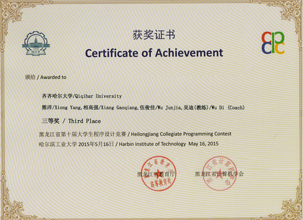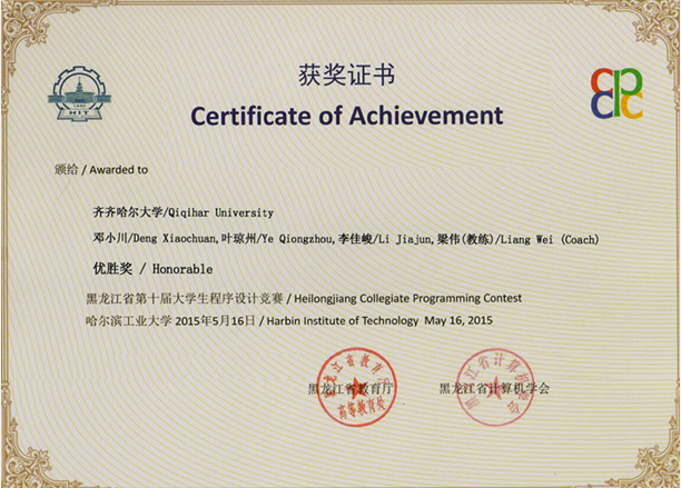 我院对学科竞赛活动高度重视,在实践教学与设备管理处、教务处、校团委和外事处的大力支持下,我院学生在黑龙江省、东北四省、中俄ACM/ICPC程序设计大赛,全国软件大赛中取得了优异的成绩,为学校争得了荣誉,体现了计算机与控制工程学院重视实践教学、以创新能力培养为核心的人才培养的成果,也充分展示了我院学生的综合素质及创新能力。