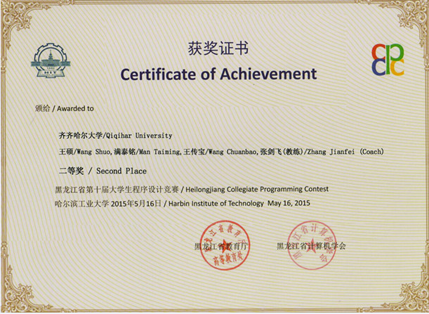 5月15日—16日,第十届黑龙江省大学生程序设计竞赛在哈尔滨工业大学举行。本次竞赛由黑龙江省教育厅、黑龙江省计算机学会主办,由哈尔滨工业大学承办。本届黑龙江省大学生程序设计竞赛吸引了包括哈尔滨工业大学、哈尔滨工程大学、哈尔滨理工大学等145支参赛队共计500余人参加,我校有3支队伍参加比赛。由我院计算机科学与技术、网络工程和软件工程专业学生王硕、满泰明、王传宝3名同学组成的参赛1队喜获二等奖,熊洋、相高强、伍俊佳3名同学组成的参赛2队喜获三等奖,邓小川、叶琼州、李佳峻组成的参赛3队获得优胜奖。在竞赛过程中我院学生充分展现了良好的精神风貌、心理素质以及团队协作能力,展示了计算机程序设计才能,赛出了风采、赛出了水平,收获了优异成绩。