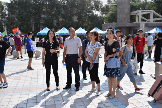 8月22日,校党委书记兰景力,校长马立群,常务副校长郑喜群,学校办公室主任张德庆,学生工作部(处)处长姜波等领导莅临我院迎新现场,与正在现场指导迎新工作的我院党委书记胥军,院长郭媛,副书记副院长张春华,副院长徐凤霞以及张宏烈进行了亲切交谈,详细询问了我院迎新工作的进展情况,并对我院迎新生工作进行了指导。