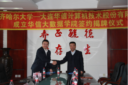 为进一步深化校企合作,构建校企合作协同育人创新培养模式,10月31日下午,齐齐哈尔大学与大连华信计算机技术股份有限公司合作成立的华信大数据学院揭牌暨签约仪式在办公楼504会议室隆重举行。