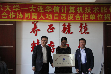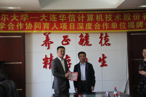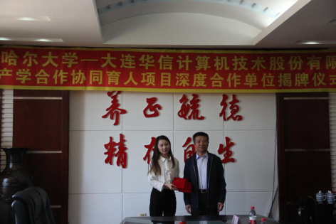 最后,郭媛为此次揭牌仪式进行了总结。她说,当今社会已经进入了大数据的时代, “大数据战略作为‘十三五’期间的十四大国家战略之一,是中国经济发展新的驱动力。”我院紧跟国际、国内大数据新技术发展的步伐,为进一步深化校企合作,构建校企合作协同育人创新培养模式,今天我们在这里见证了《齐齐哈尔大学-大连华信 产学合作协同育人项目深度合作单位》揭牌仪式的全过程,这是一个崭新的开始。希望我们的大学生可以在这里发挥特长,增长实践技能,为企业提供人才,最终实现双赢。