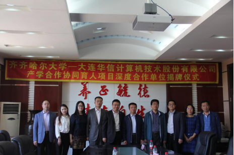 自2017年10月我院与大连华信计算机技术股份有限公司成立我校首个华信大数据学院以来,为进一步深化校企合作,构建校企合作协同育人创新培养模式,5月10日下午,齐齐哈尔大学与大连华信计算机技术股份有限公司产学合作协同育人项目深度合作单位揭牌仪式在办公楼504会议室隆重举行。