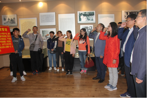 党课结束后,师生党员们在学院院长郭媛的带领下,面对党旗,重温入党誓词,用永不背弃的誓言和高亢洪亮的声音表达出大家争做合格党员的坚定决心和信念。