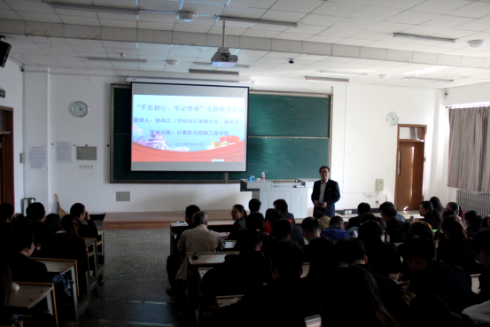 根据我校“不忘初心、牢记使命”主题教育宣讲活动的日程安排,9月18日下午,学校办公室副主任、副教授徐凤江为我院师生作了题为《牢记初心使命深入推进新时代党的建设伟大工程》的主题宣讲。学院领导班子成员、学院“不忘初心,牢记使命”主题教育工作领导小组成员、教师党员和部分学生党员参加了宣讲,宣讲由学院党委书记陈志强主持。