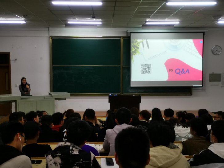 本次招聘会共分两个场次,每个场次分为宣讲、笔试、面试三个环节。第一场宣讲在就业指导中心二楼招聘大厅和多媒体教室两个场地同时进行。工作人员分别从公司整体情况、公司文化与运营情况、校园招聘岗位设置与需求、人才培养与发展方向等方面的内容进行了介绍和讲解,回答了同学们的现场提问,并向积极互动的同学赠送了精美的纪念品。同学们踊跃参与,现场气氛热烈。