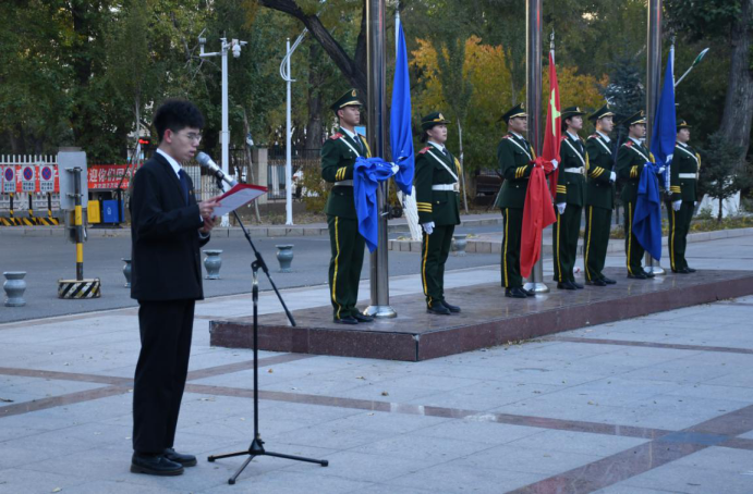 2020年10月19日早7时,我院在学校中区广场举行“山河今有恙,少年当自强”主题升国旗仪式。本次升旗仪式也是在新生军训结束后举行的一次爱国主义教育活动。我院党委书记陈志强、党委副书记孟庆伟、学工办主任张英琦、各年级辅导员和各年级学生代表参加了升旗仪式。