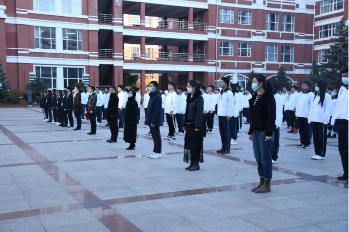 200多名学生身着崭新的校服整齐列队在国旗下,气氛庄严肃穆。当雄壮的国歌声响起,鲜红的五星红旗冉冉升起,在场的每一个人都感到无比骄傲与自豪。在共同抗击新冠疫情的特殊时刻,我们身后强大的祖国,必将带领我们渡过最艰难的的时光,迎来最盛大的繁华。