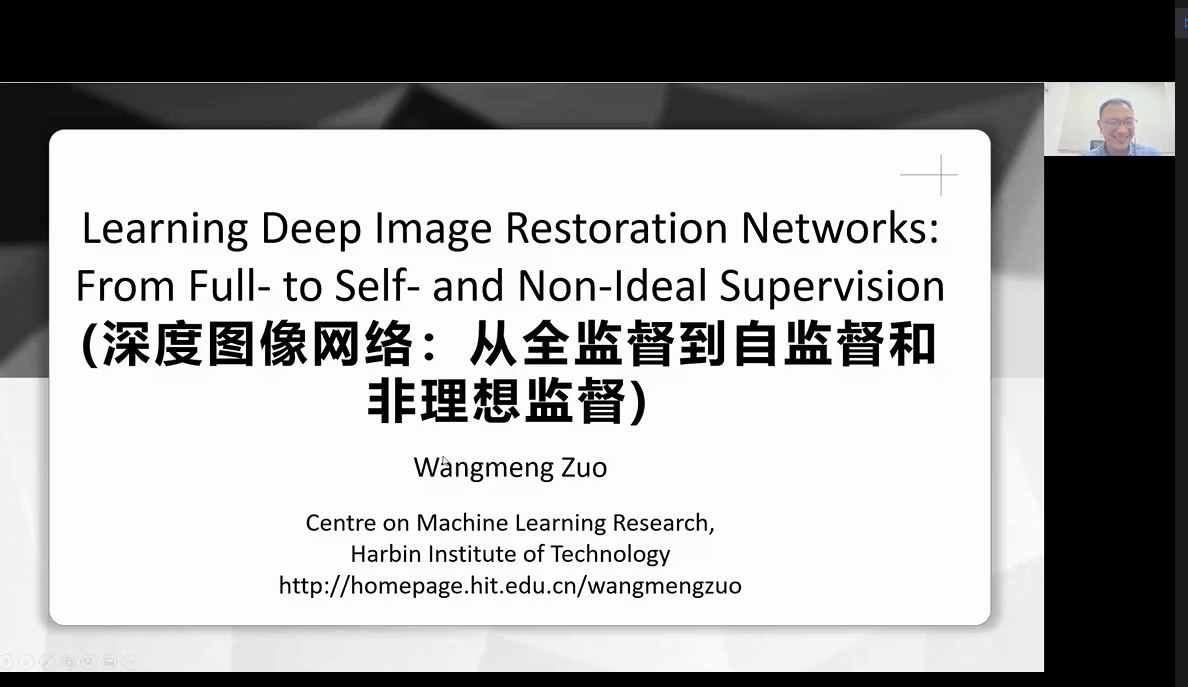 12月15日下午,我院邀请哈尔滨工业大学左旺孟教授为我校师生作题为《深度图像复原网络学习:从全监督和自监督到非理想监督》的学术报告。报告会由计算机科学与技术一级学科带头人、教务处处长郭媛教授主持,相关领域的教师和学生共计200余人次,以线上的形式参与了本次学术报告。