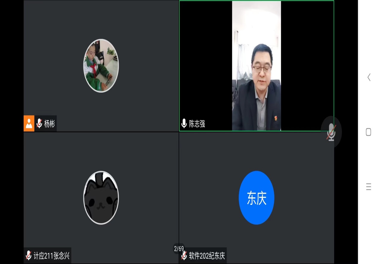 按照《齐齐哈尔大学“能力作风建设年”活动实施方案》工作部署,结合“千堂党课进支部”活动要求,为积极贯彻落实能力作风建设年活动要求,切实提高全体党员干部、入党积极分子的思想认识,持续提升基层党组织的组织力、凝聚力和战斗力,推动学院党建和业务工作深度融合。6月8日下午,学院利用腾讯会议线上开展党委书记讲“能力作风建设年”专题党课活动,学院党委书记陈志强以《深刻领会习近平总书记两个重要讲话精神实质、准确把握科学内涵,努力践行新时代的使命与担当》为题进行了汇报,学院全体党员、入党积极分子聆听了报告。
