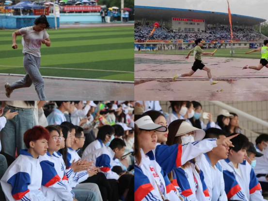运动会期间,尽管气温微凉、雨后地面潮湿,师生们的参赛热情仍丝毫不减,于风雨中奔跑一幕使现场气氛达到顶峰,同学们心潮澎湃,为运动健儿们加油助威。