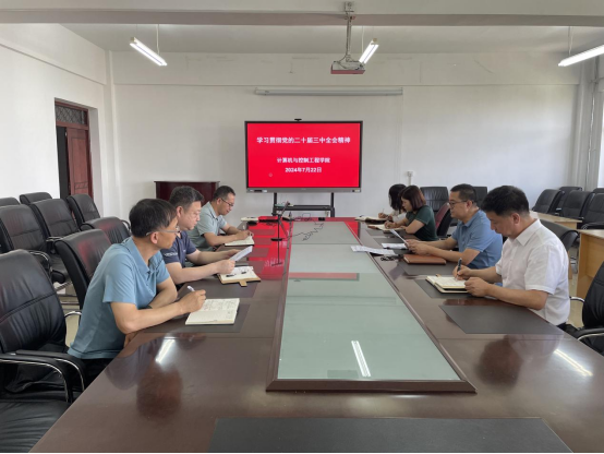 7月22日下午,我院在博才楼(6教)525会议室召开党委会议,传达布署学习贯彻党的二十届三中全会精神,学院领导班子成员、党委委员参加了会议,会议由学院党委书记陈志强主持。