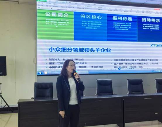 在宣讲会的互动环节中,学生们积极提问,表现出对加入广州炫通电气科技有限公司的浓厚兴趣。张昕对学生们的问题给予了详细的解答,并鼓励他们积极投递简历,参与到公司的招聘流程中来。她承诺:“我们将为每一位加入炫通的员工提供完善的培训体系和广阔的职业发展空间,帮助每个人实现个人价值和职业目标。”