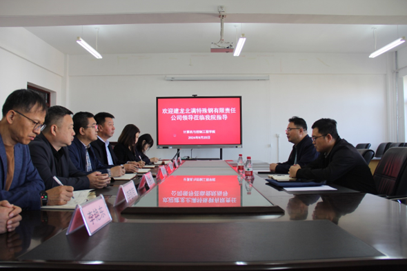签约仪式前,双方就企业人才需求、学院专业结构及人才培养模式进行了深入交流。陈志强对我院在推动产教融合、服务地方经济发展等方面所进行的工作及取得的成效进行了介绍。张剑飞对我院专业设置、师资力量、教学科研成果以及学生培养特色进行了说明。赵相隶和李海洋分别就北满特钢展历程、科技创新理念、市场布局、人才战略情况和人才需求现状、人才培养规划进行了介绍。我院其他班子成员结合分管工作就如何有效推进双方合作发表了意见和看法。