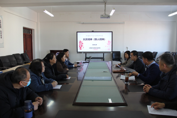 会议伊始,与会人员共同观看了由共产党员电视栏目编辑部制作的“中国共产党人精神谱系”专题视频《精神的追寻——中国共产党人精神谱系 第22集:大庆精神》。该片介绍了大庆油田的开发历程,讲述了铁人王进喜的创业故事,讴歌了以铁人为代表的大庆石油工人在中国共产党的领导下战天斗地、艰苦奋斗,誓为祖国献石油的英雄壮举,生动展现了以“爱国、创业、求实、奉献”为内涵的大庆精神(铁人精神)。