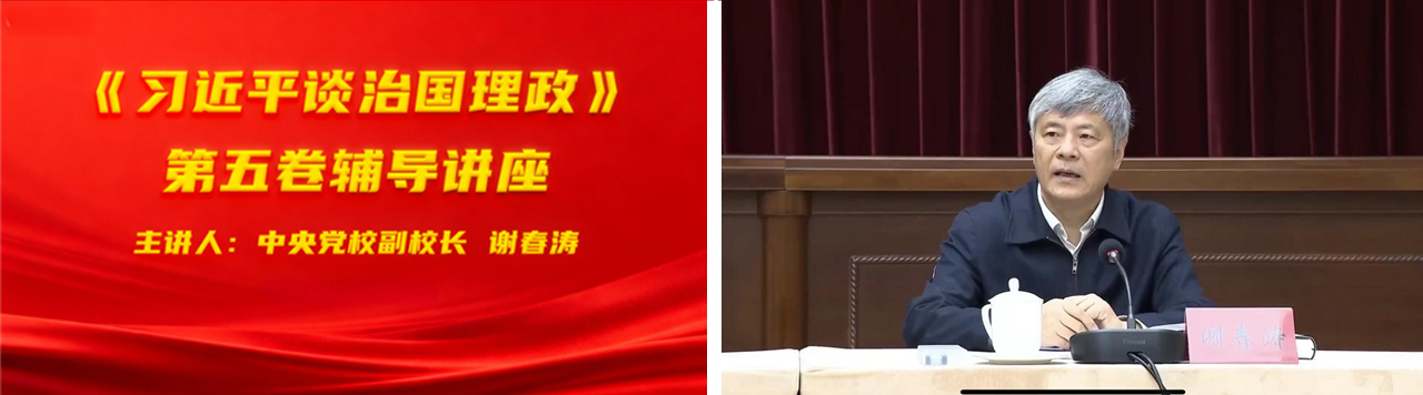 为深入学习贯彻习近平新时代中国特色社会主义思想,10月22日,我院组织师生党员收听收看了《习近平谈治国理政》第五卷辅导讲座,讲座由中央党校(国家行政学院)分管日常工作的副校(院)长谢春涛主讲。
