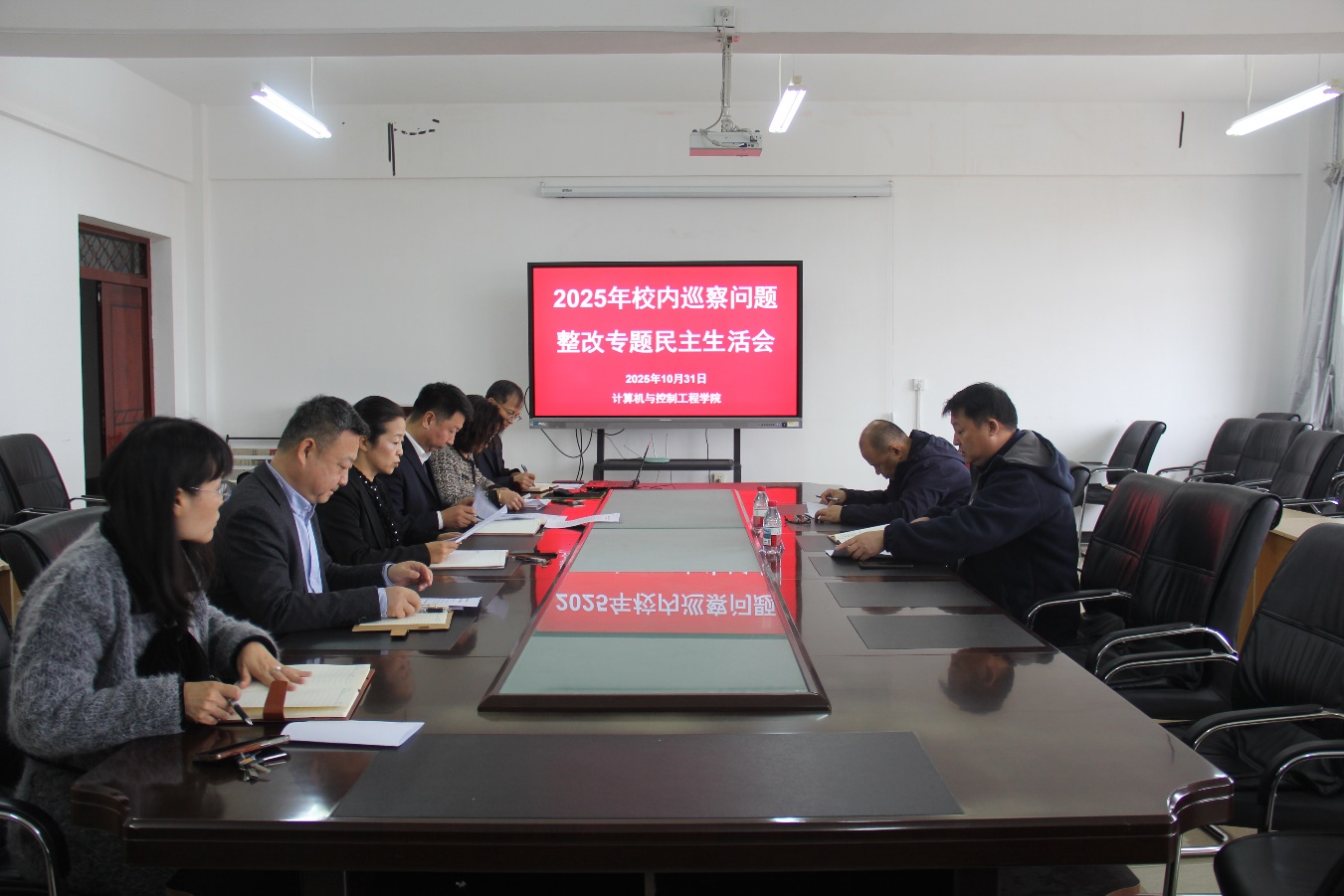 按照学校党委巡察工作统一部署,10月31日下午,计算机与控制工程学院党委召开巡察整改专题民主生活会,计控学院全体班子成员参加会议,纪委副书记兼纪委办公室主任李刚石、纪检监察一室主任李文斌到会指导,学院党委书记吴银玲主持会议。