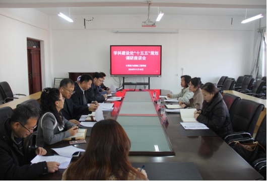 为科学编制学校“十五五”发展规划,提升学科建设质量,11月18日上午,学校学科建设处处长藏雨、副处长杨雷、邓庆芳一行到学院围绕学科建设开展专题调研和指导。学院院长张剑飞、副院长李敬有,相关学科带头人及研究生导师代表参加了本次会议,会议由藏雨处长主持。