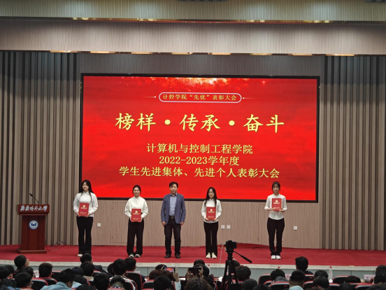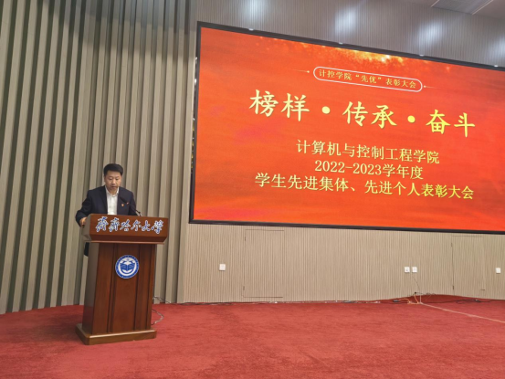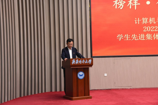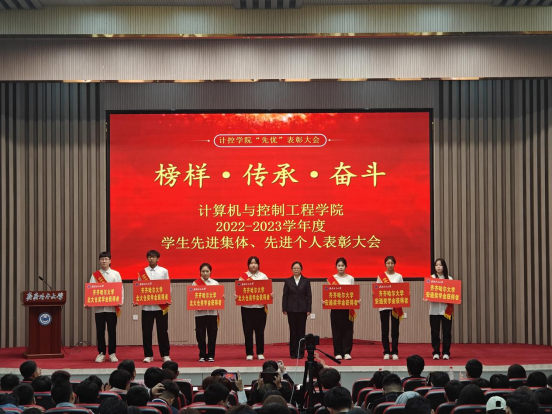 为推进“三全育人”走深走实,充分发挥优秀典型榜样的示范引领作用,推进“致知、致用、致远”的优良学风建设,营造创先争优、共同发展的良好氛围。5月11日上午,计算机与控制工程学院在日新大厦学术报告厅隆重举行了计算机与控制工程学院2022-2023学年度先进集体、先进个人表彰大会。学校教务处处长刘省非、学生工作部(学生处)部(处)长杜海权、校团委书记罗霄、研究生部党委副书记栾锋,学院党委书记陈志强、院长张剑飞、学院党委副书记孟庆伟、副院长于晓敏、李敬有、朱磊、学院团委副书记姜艳丽,学院各系主任、专业带头人、综合办、教科研办、学工办全体工作人员、在校研究生、本科生代表、受表彰学生代表总计400余人出席大会现场。表彰大会由学院党委副书记孟庆伟主持。会议同步进行线上直播。