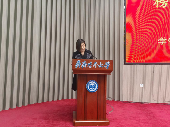 姜艳丽宣读表彰决定并为获奖者代表颁奖