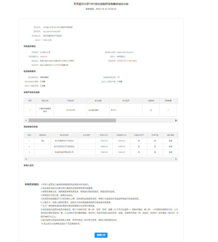 下一条:齐齐哈尔大学可见分光光度计采购需求成交公告(转自黑龙江省政府采购网)