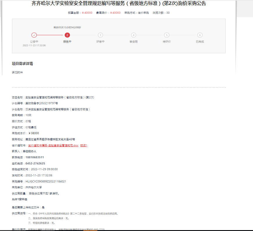 下一条:齐齐哈尔大学实验室安全管理规范编写等服务(省级地方标准)终止公告(转自黑龙江省政府采购网)