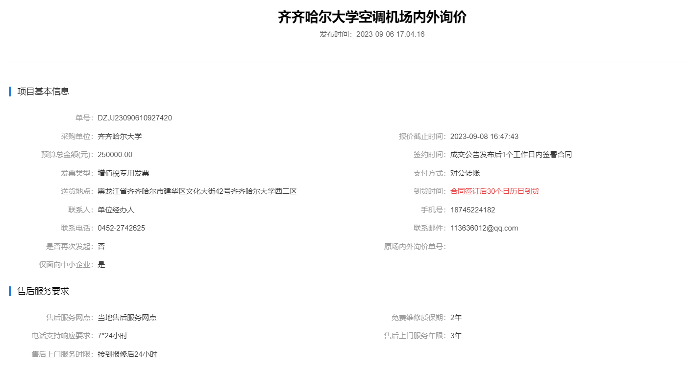 上一条:齐齐哈尔大学空调机场内外询价(二次)(转自黑龙江省政府采购网)