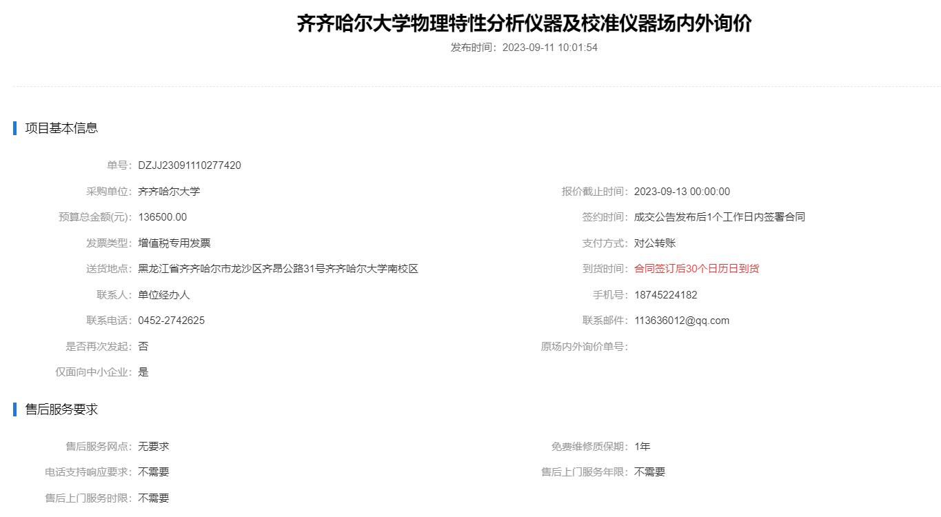 下一条:齐齐哈尔大学物理特性分析仪器及校准仪器场内外询价(DZJJ23091110257420)(转自黑龙江省政府采购网)