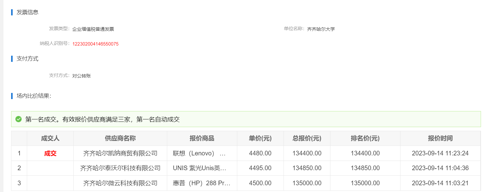 下一条:齐齐哈尔大学台式计算机场内外询价(第二次发布)(转自黑龙江省政府采购网)