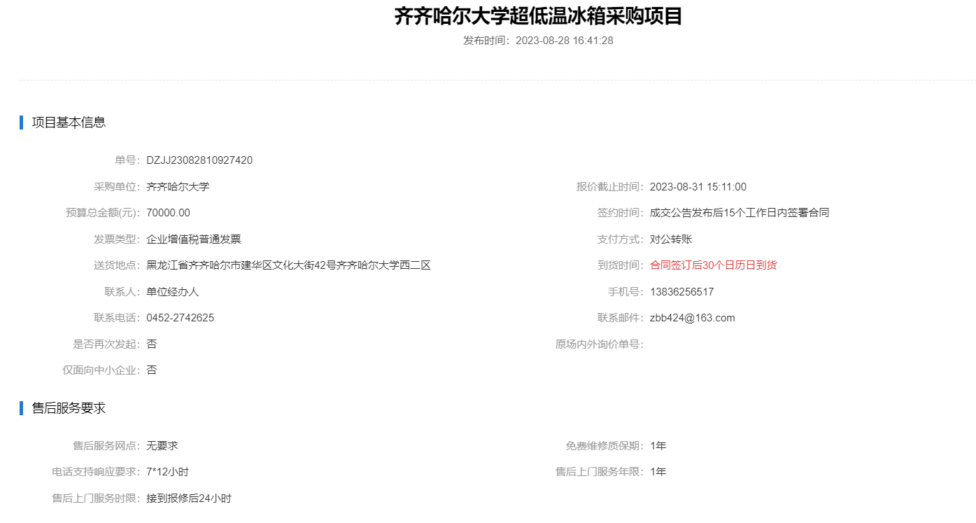 上一条:齐齐哈尔大学超低温冰箱采购项目(二次)(转自黑龙江省政府采购网)