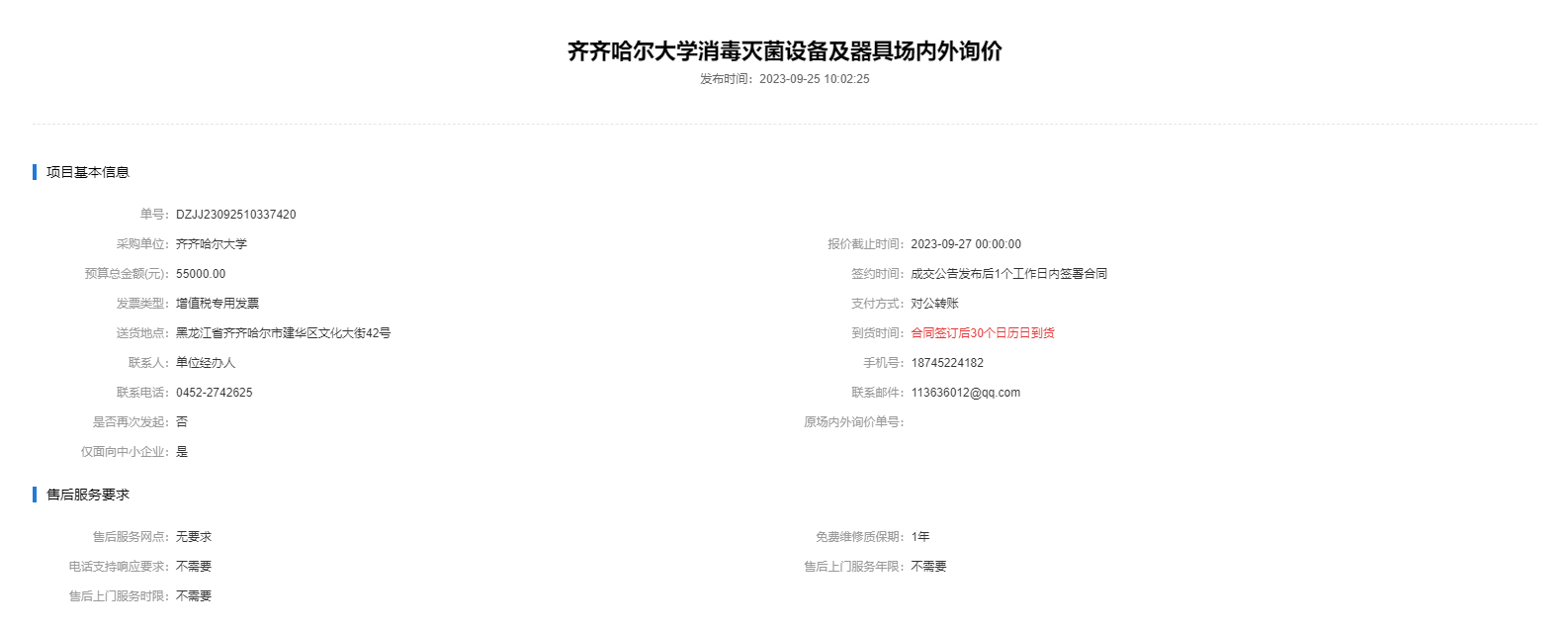 上一条:齐齐哈尔大学消毒灭菌设备及器具场内外询价(第二次)(转自黑龙江省政府采购网)