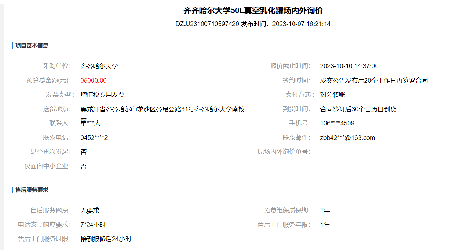 下一条:齐齐哈尔大学不锈钢分子蒸馏仪场内外询价(转自黑龙江省政府采购网)