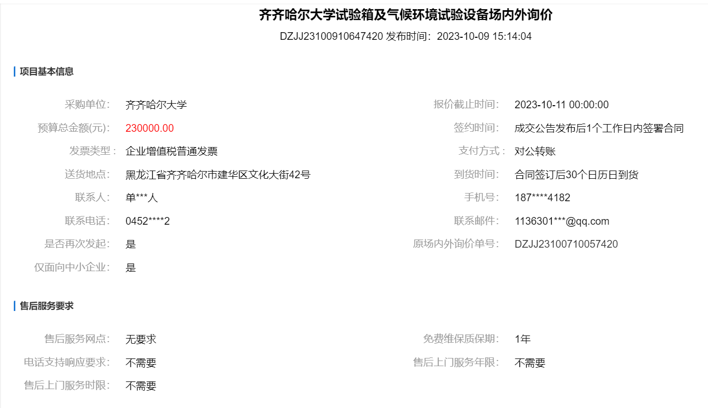 上一条:齐齐哈尔大学消毒灭菌设备及器具场内外询价(结果)(转自黑龙江省政府采购网)