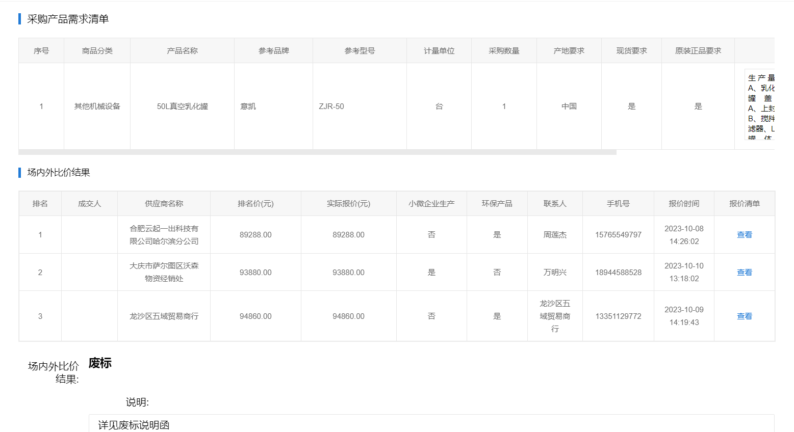 上一条:齐齐哈尔大学不锈钢分子蒸馏仪场内外询价(废标)(转自黑龙江省政府采购网)
