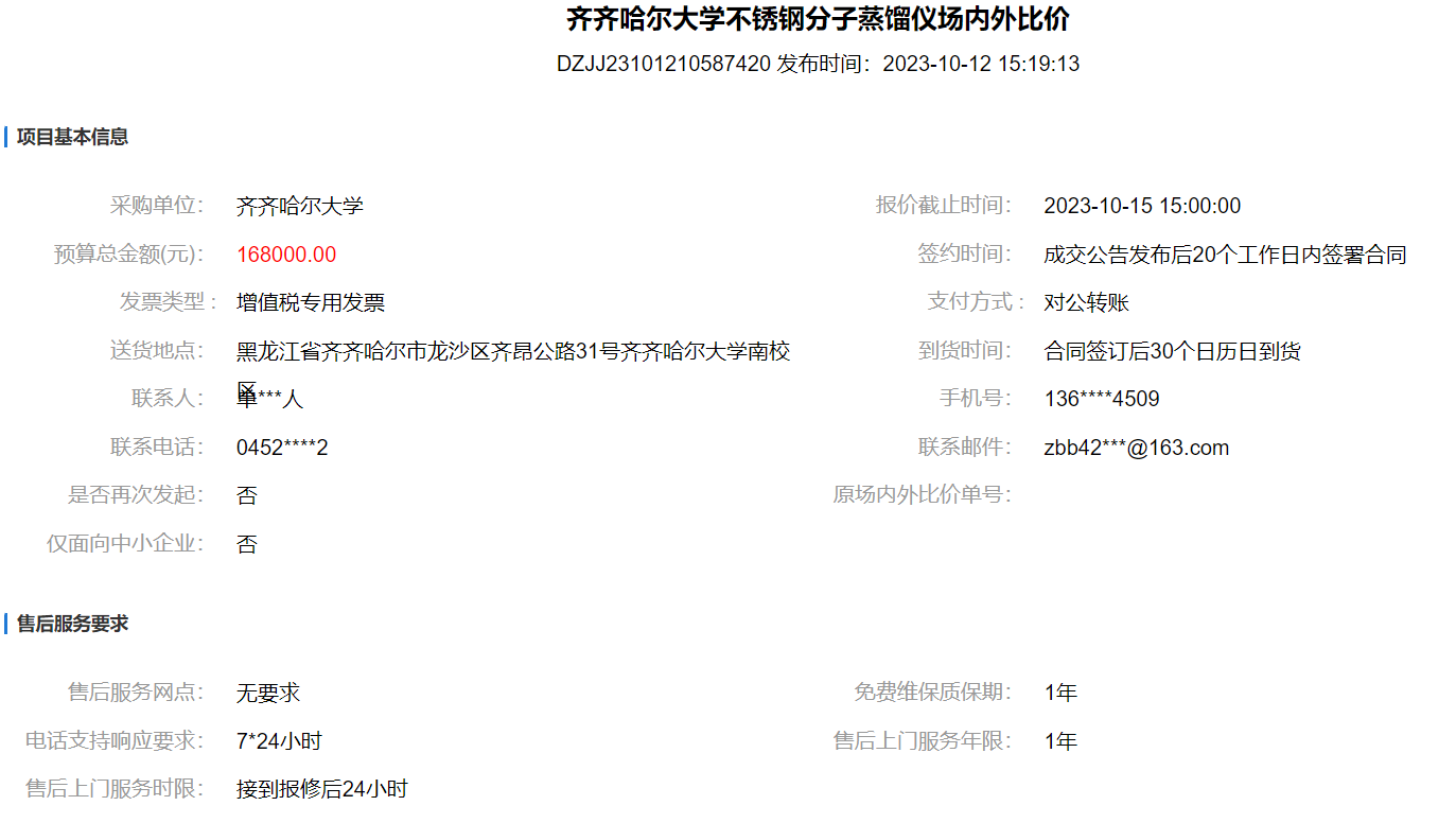 下一条:齐齐哈尔大学不锈钢分子蒸馏仪场内外询价(废标)(转自黑龙江省政府采购网)