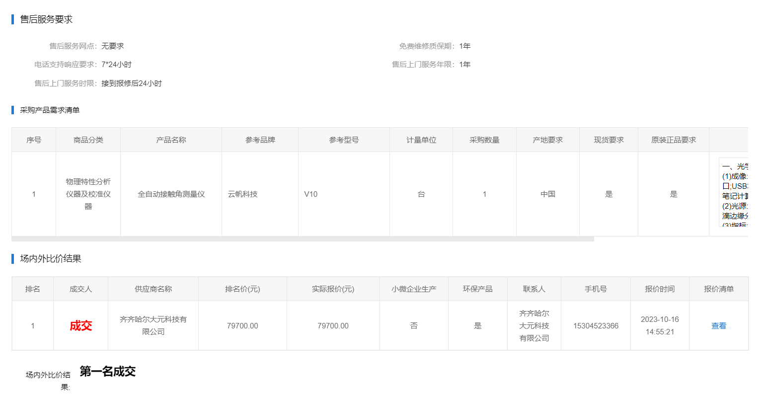 下一条:齐齐哈尔大学全自动接触角测量仪场内外比价(二次)(转自黑龙江省政府采购网)