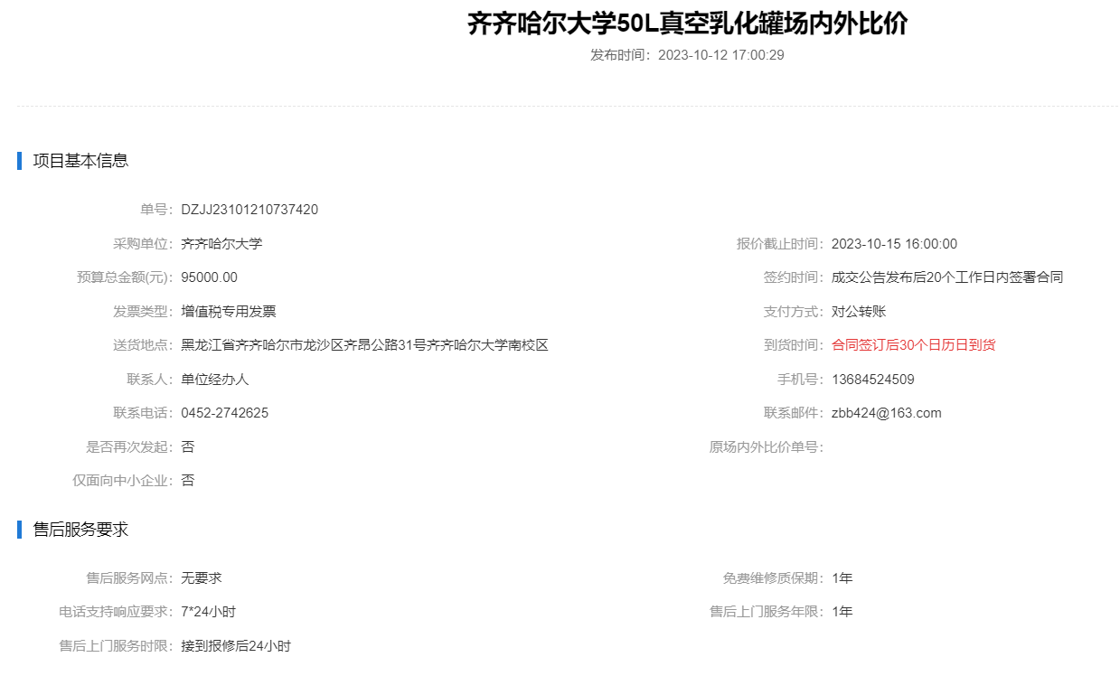 上一条:齐齐哈尔大学不锈钢分子蒸馏仪场内外比价(二次)(转自黑龙江省政府采购网)