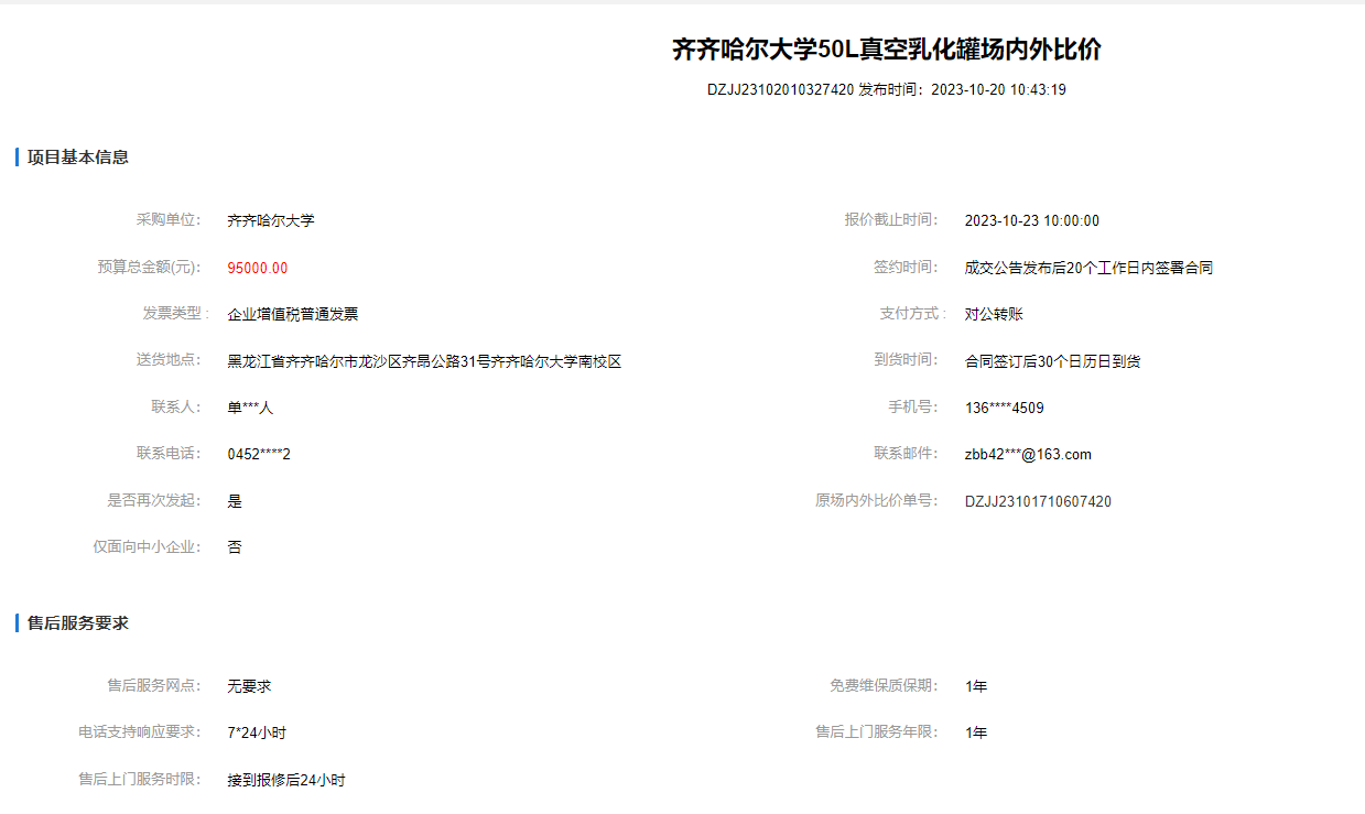 上一条:齐齐哈尔大学小鼠IVC笼具场内外比价(废标)(转自黑龙江省政府采购网)