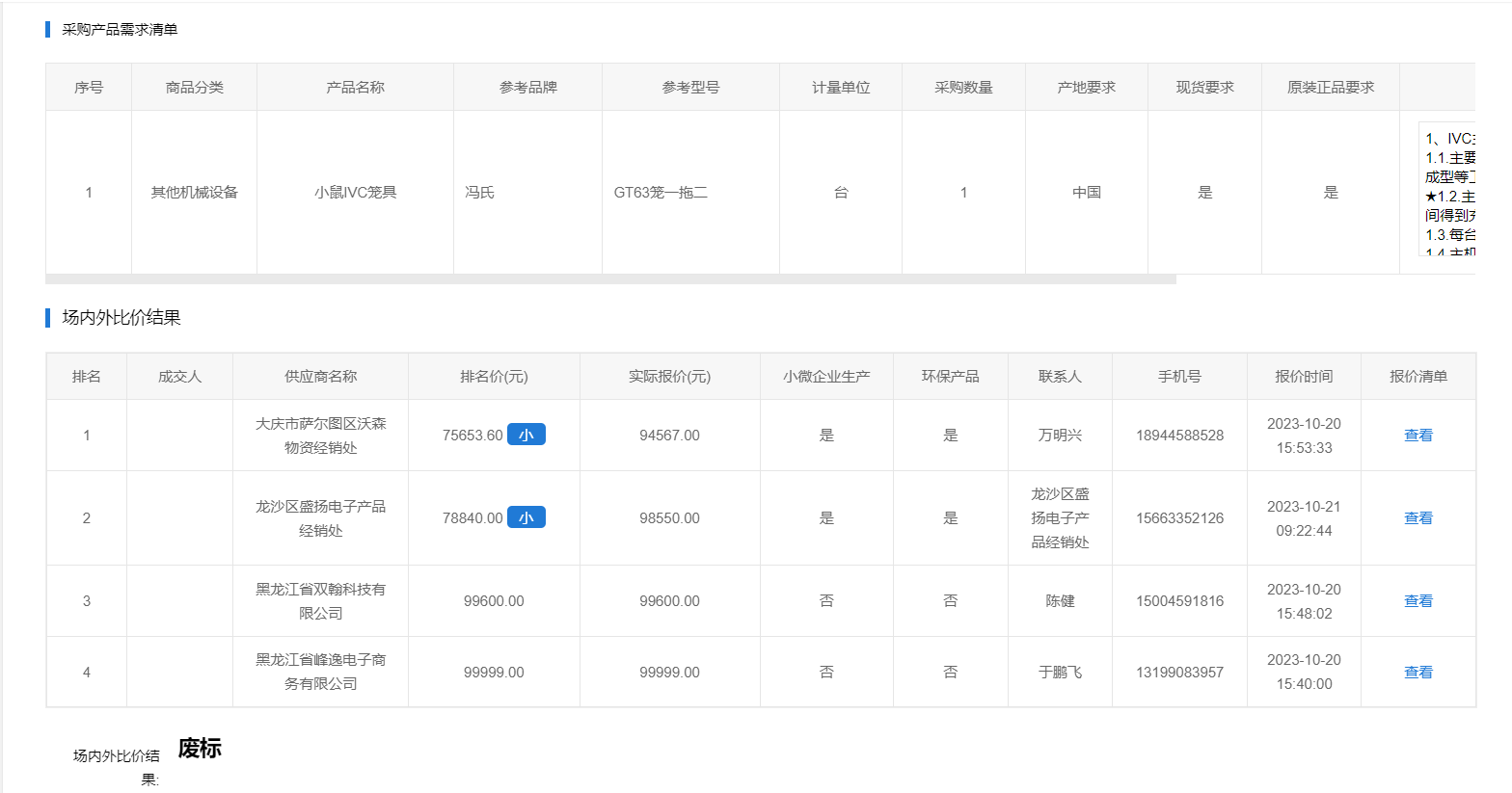 上一条:齐齐哈尔大学50L真空乳化罐场内外比价(废标)(转自黑龙江省政府采购网)