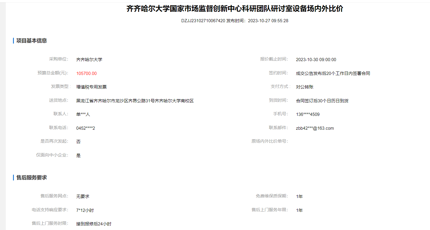 上一条:齐齐哈尔大学50L真空乳化罐场内外比价(转自黑龙江省政府采购网)