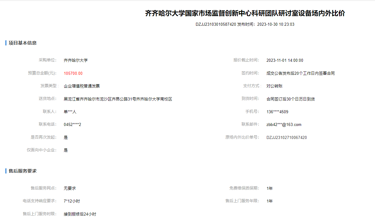 上一条:齐齐哈尔大学50L真空乳化罐场内外比价(转自黑龙江省政府采购网)