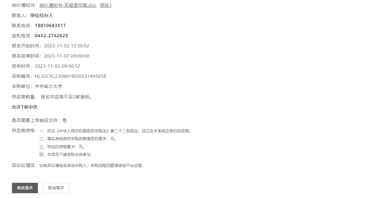 上一条:齐齐哈尔大学国家市场监督创新中心科研团队研讨室设备场内外比价(结果)(转自黑龙江省政府采购网)